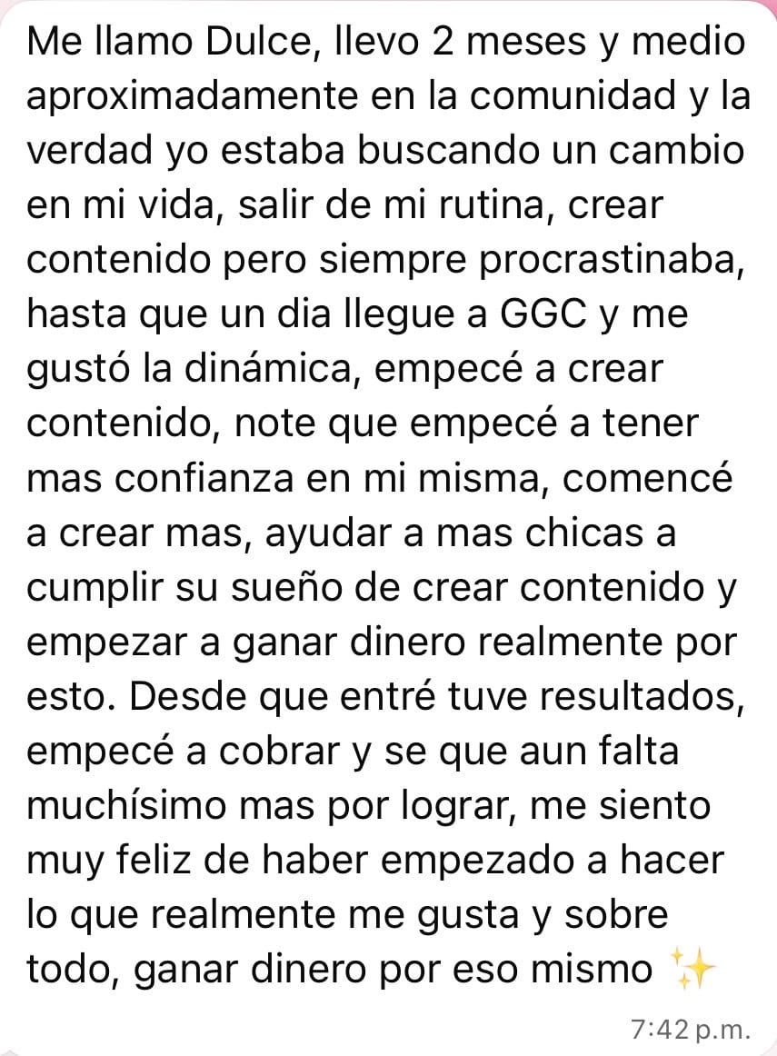 Es una comunidad privada de mujeres que están aprendiendo a crear contenido estratégico y generar ingresos colaborando con marcas reales.